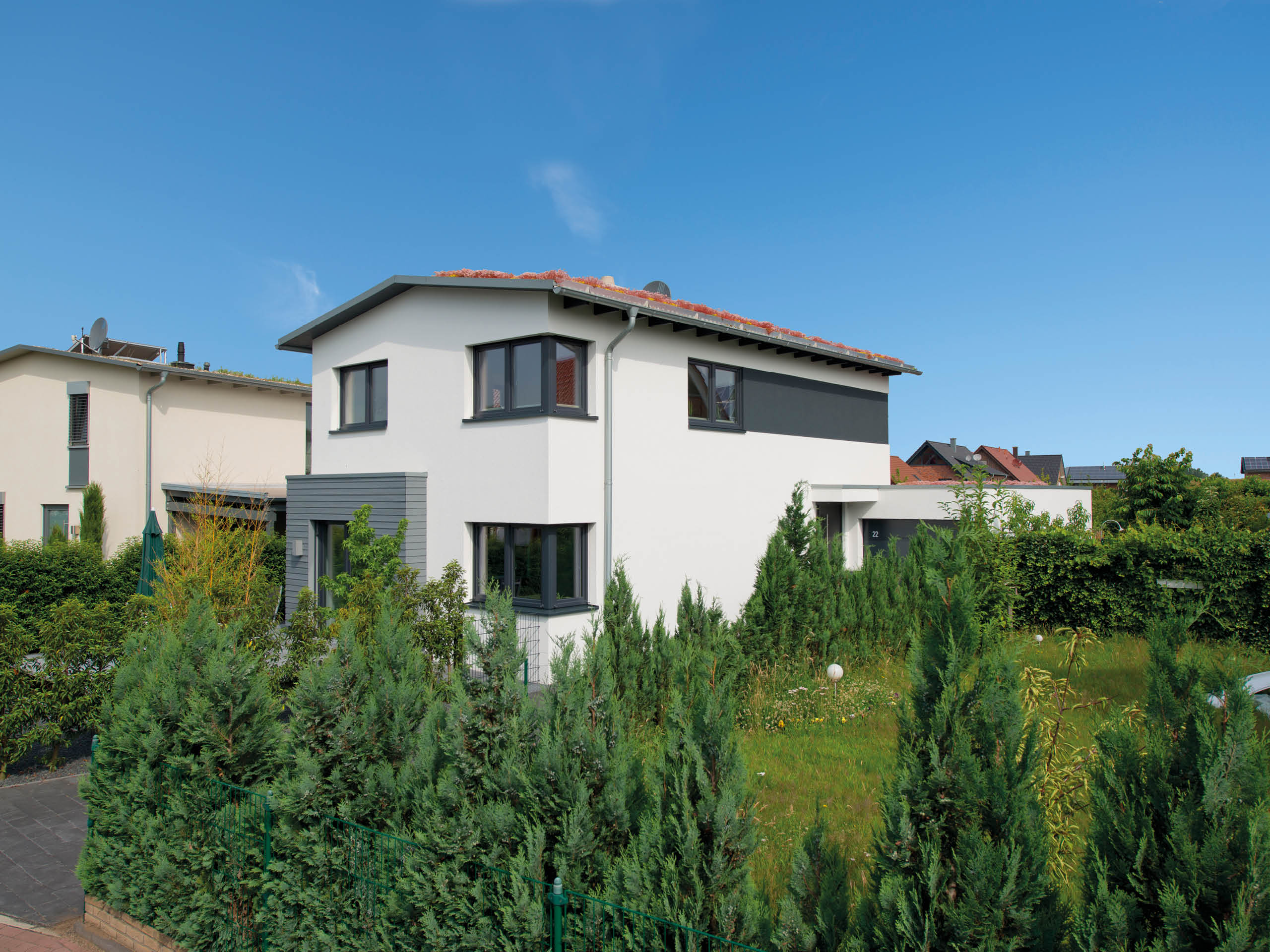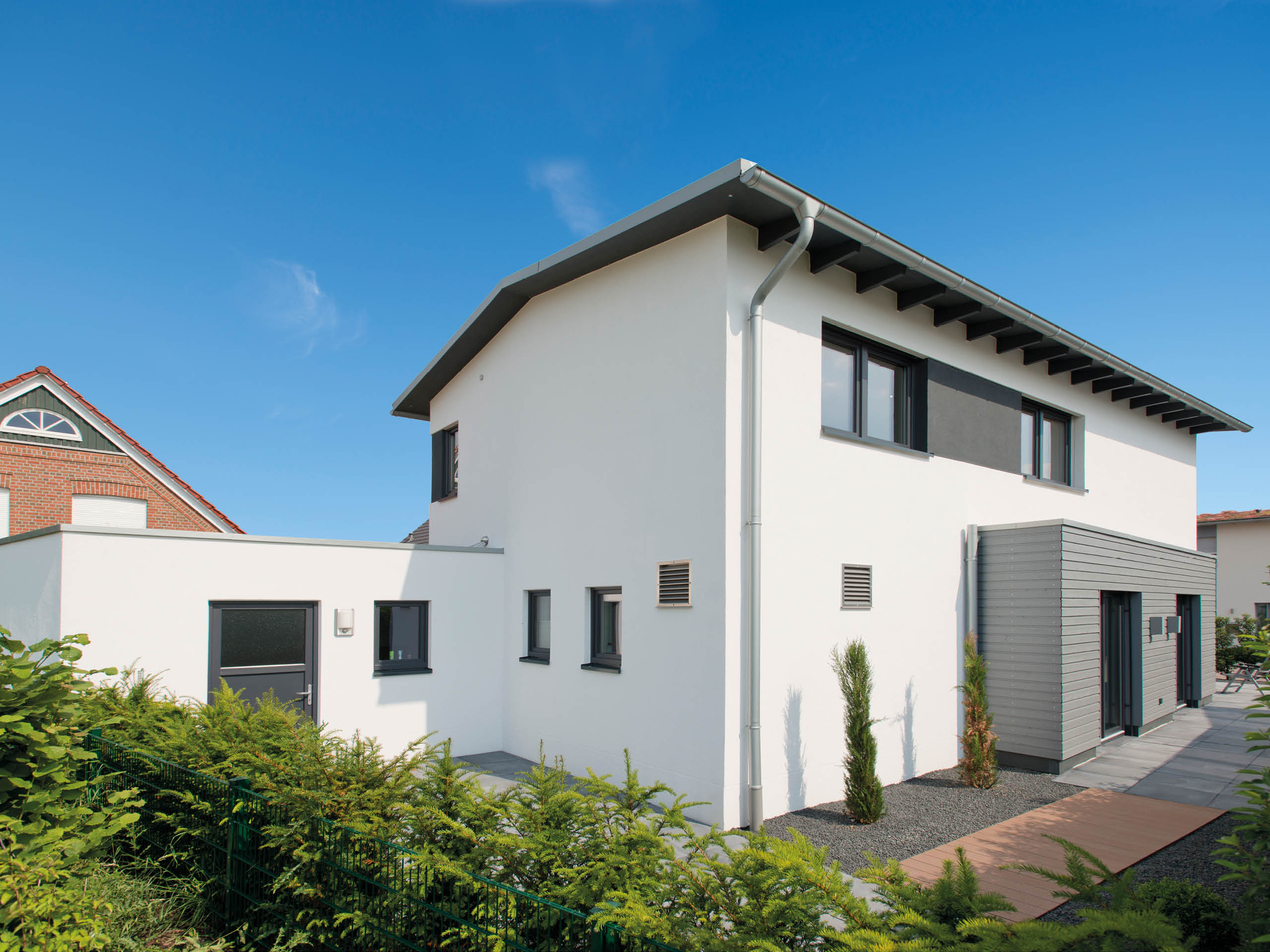 Als Teil einer Neubausiedlung galt es für dieses Projekt einige Vorgaben einzuhalten. Ziel des Bauvorhabens war es nämlich, ganz im Sinne der Nachhaltigkeit, die Wohnfläche je Hausbewohner möglichst gering zu halten. Mit etwas Feinarbeit gelang es aber problemlos, die Wünsche des Bauherrn mit den Interessen der Stadt in Einklang zu bringen.