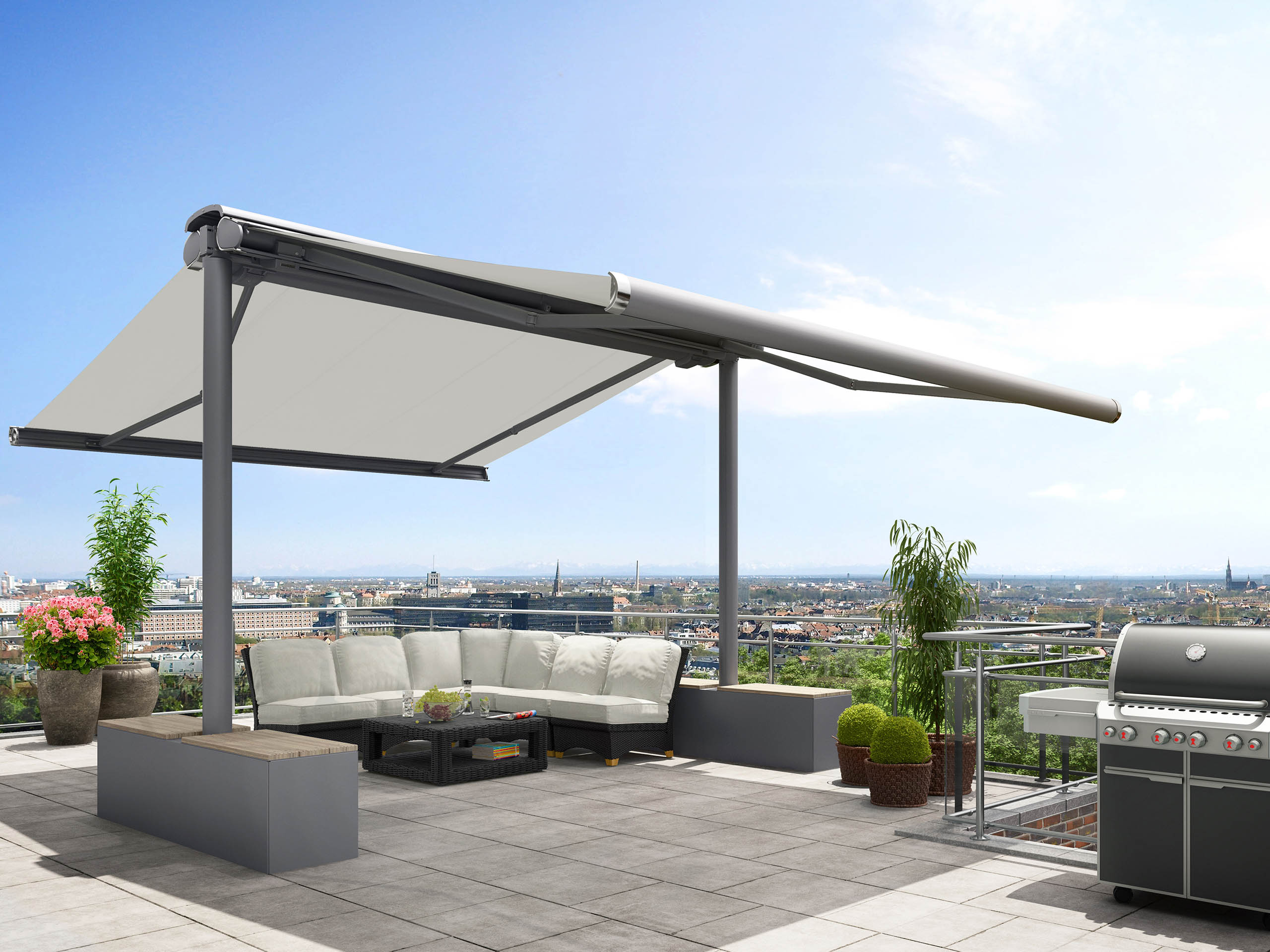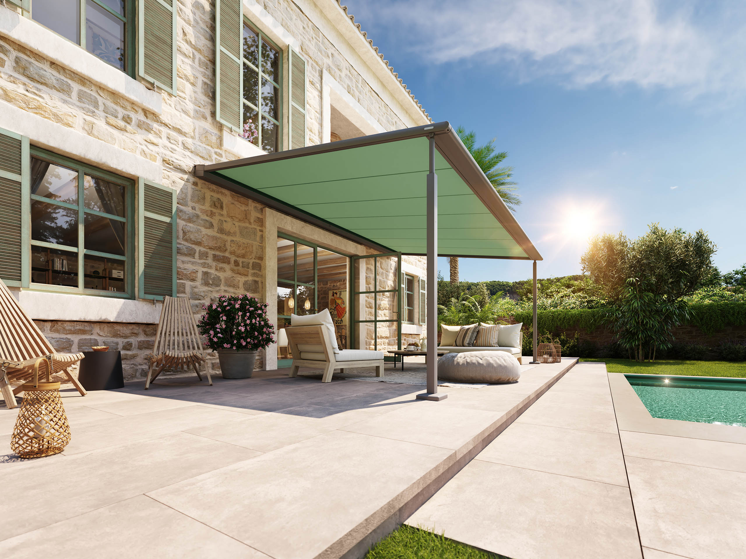 Ob im Garten oder am Pool – freistehende Markisen sorgen auch fernab von Gebäuden für besten Sonnenschutz.